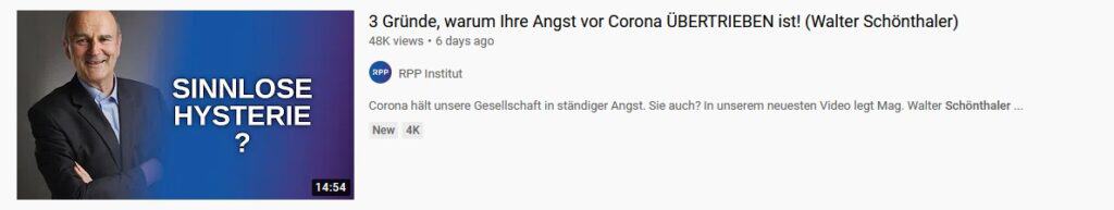Vor etwa 5 1/2 Jahren, Mitte September 2020 wurde mein Video „3 Gründe, warum Ihre Angst vor Corona übertrieben ist – Analyse der 3 Säulen der Corona-Angst“ auf RPP-Institut veröffentlicht. Es erreichte 48K Views, bis es kurz vor Beginn der ersten mRNA-„Impfungen“ plötzlich aus dem Netz verschwand.