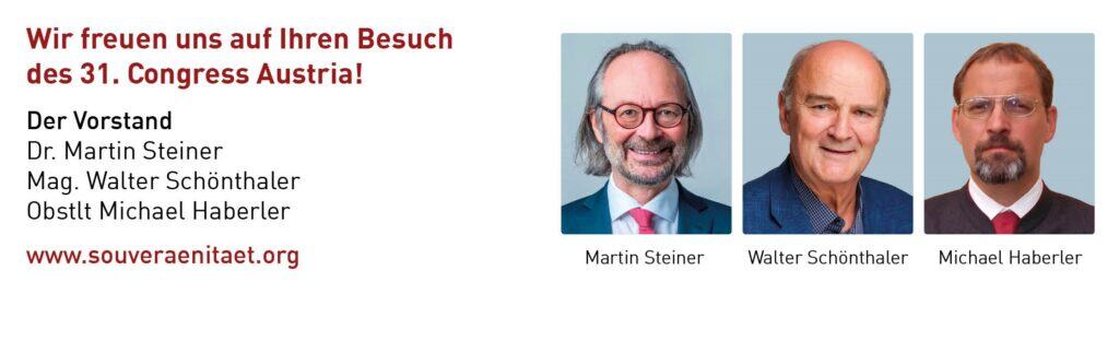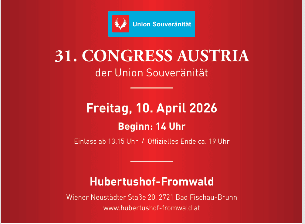 Zu diesem 31. CONGRESS AUSTRIA sind nicht nur die Mitglieder der UNION SOUVERÄNITÄT, sondern auch interessierte Personen eingeladen, die derzeit nicht (oder noch nicht) Mitglied der UNION SOUVERÄNITÄT sind.